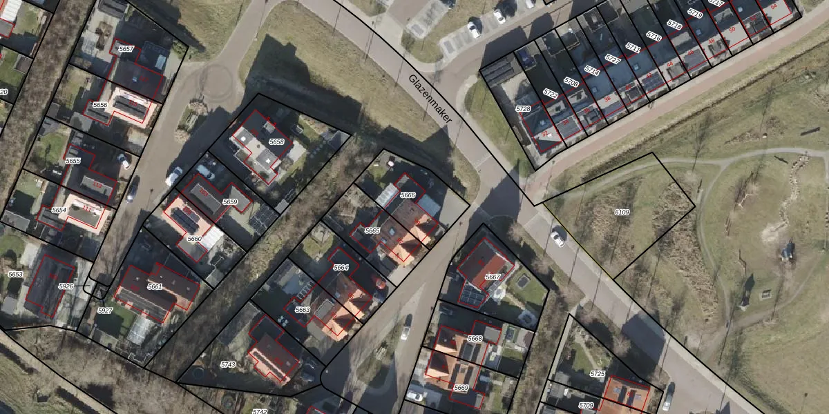 Het perceel waarop Glazenmaker 99 staat heeft een oppervlakte van 338 m². Dit is een groot perceel. De perceeloppervlakte wordt geregistreerd door het Kadaster. Gedetailleerde informatie over de maten van dit perceel kunt u vinden in het rapport Kadastrale kaart met maatvoering van Glazenmaker 99.