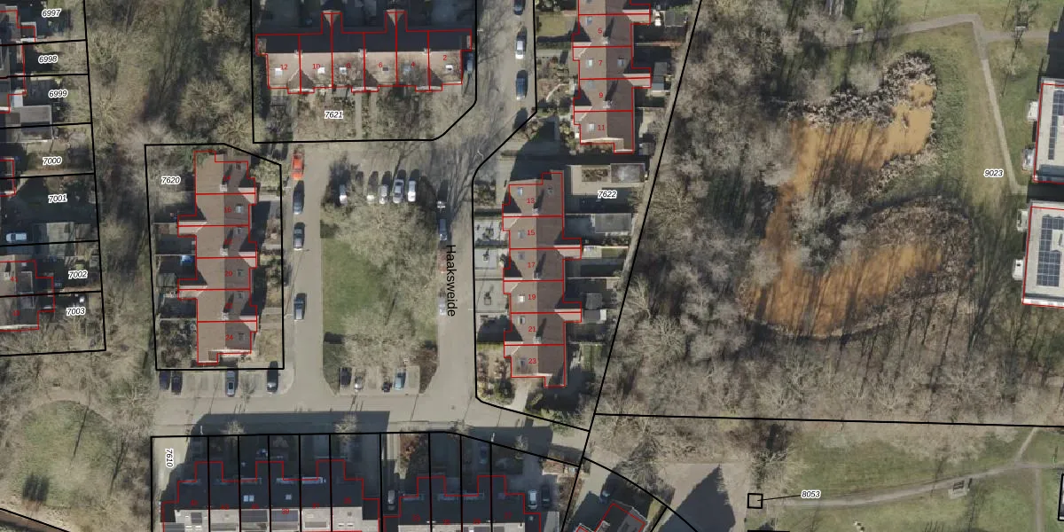 Het perceel waarop Haaksweide 17 staat heeft een oppervlakte van 2600 m². Dit is een zeer groot perceel. De perceeloppervlakte wordt geregistreerd door het Kadaster. Gedetailleerde informatie over de maten van dit perceel kunt u vinden in het rapport Kadastrale kaart met maatvoering van Haaksweide 17.