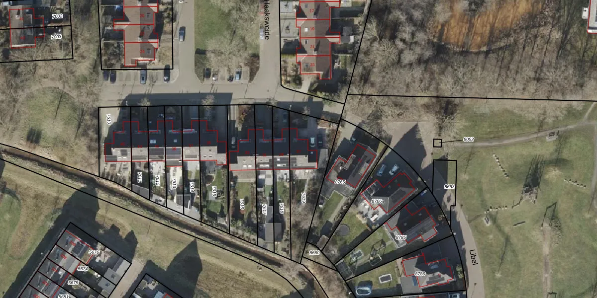 Gebruik de zoekbalk of klik op een perceel voor informatie over de adressen binnen dit perceel.