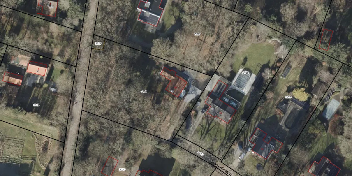 Het perceel waarop Hagedisweg 18 staat heeft een oppervlakte van 2602 m². Dit is een zeer groot perceel. De perceeloppervlakte wordt geregistreerd door het Kadaster. Gedetailleerde informatie over de maten van dit perceel kunt u vinden in het rapport Kadastrale kaart met maatvoering van Hagedisweg 18.