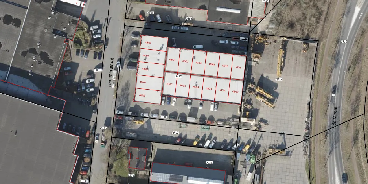 Het perceel waarop Hammerstraat 48-16 staat heeft een oppervlakte van 3298 m². Dit is een zeer groot perceel. De perceeloppervlakte wordt geregistreerd door het Kadaster. Gedetailleerde informatie over de maten van dit perceel kunt u vinden in het rapport Kadastrale kaart met maatvoering van Hammerstraat 48-16.