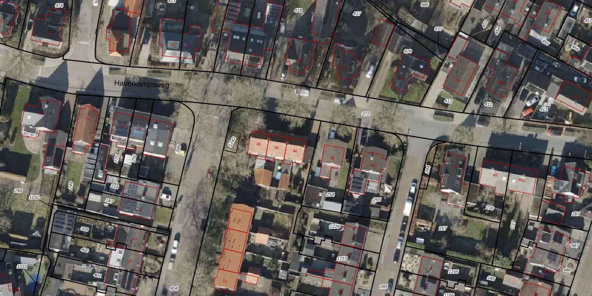 Het perceel waarop Haverkampsweg 34 staat heeft een oppervlakte van 4918 m². Dit is een zeer groot perceel. De perceeloppervlakte wordt geregistreerd door het Kadaster. Gedetailleerde informatie over de maten van dit perceel kunt u vinden in het rapport Kadastrale kaart met maatvoering van Haverkampsweg 34.