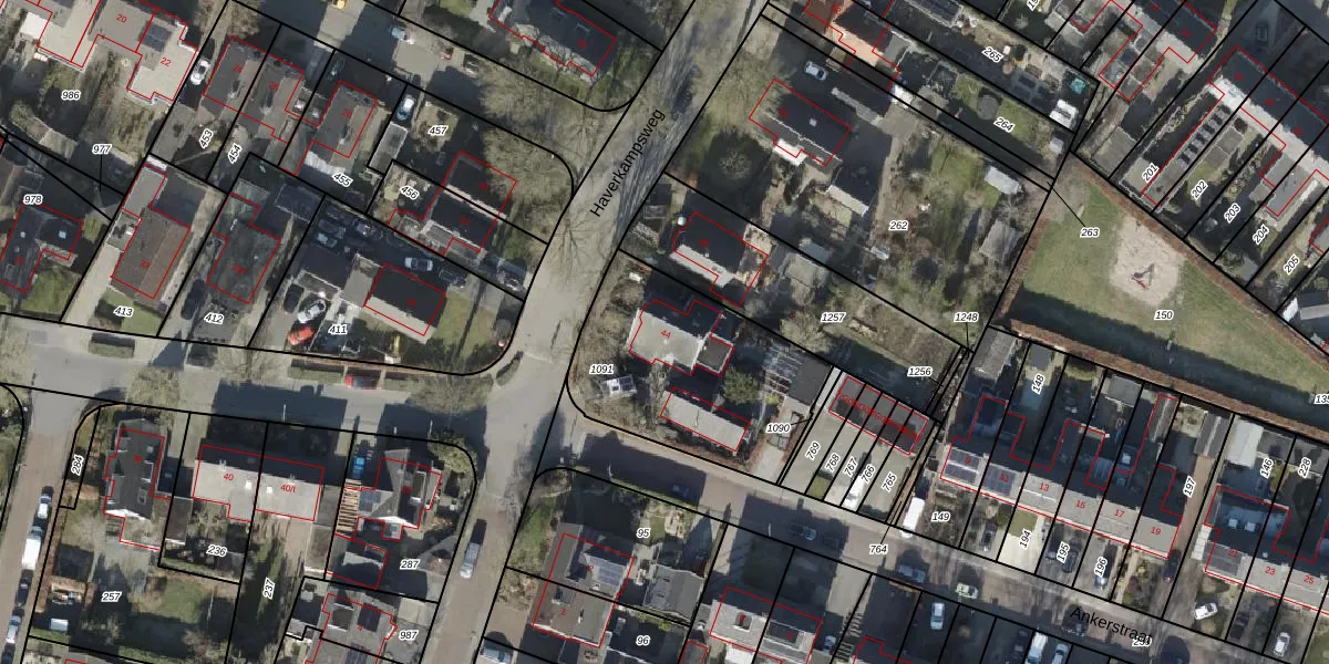 Het perceel waarop Haverkampsweg 44 staat heeft een oppervlakte van 814 m². Dit is een groot perceel. De perceeloppervlakte wordt geregistreerd door het Kadaster. Gedetailleerde informatie over de maten van dit perceel kunt u vinden in het rapport Kadastrale kaart met maatvoering van Haverkampsweg 44.
