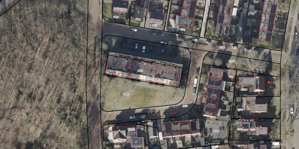 Het perceel waarop Hazekeuken 21 staat heeft een oppervlakte van 688 m². Dit is een groot perceel. De perceeloppervlakte wordt geregistreerd door het Kadaster. Gedetailleerde informatie over de maten van dit perceel kunt u vinden in het rapport Kadastrale kaart met maatvoering van Hazekeuken 21.