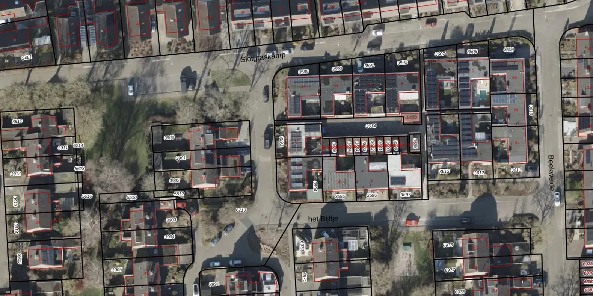 Het perceel waarop het Bijltje 14 staat heeft een oppervlakte van 192 m². Dit is een middelgroot perceel. De perceeloppervlakte wordt geregistreerd door het Kadaster. Gedetailleerde informatie over de maten van dit perceel kunt u vinden in het rapport Kadastrale kaart met maatvoering van het Bijltje 14.