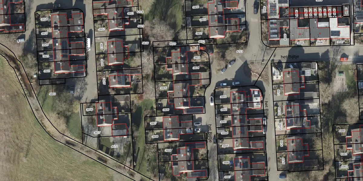 Gebruik de zoekbalk of klik op een perceel voor informatie over de adressen binnen dit perceel.