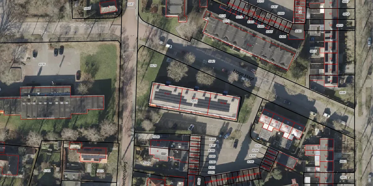 Het perceel waarop Hoge Hagt 14 staat heeft een oppervlakte van 660 m². Dit is een groot perceel. De perceeloppervlakte wordt geregistreerd door het Kadaster. Gedetailleerde informatie over de maten van dit perceel kunt u vinden in het rapport Kadastrale kaart met maatvoering van Hoge Hagt 14.