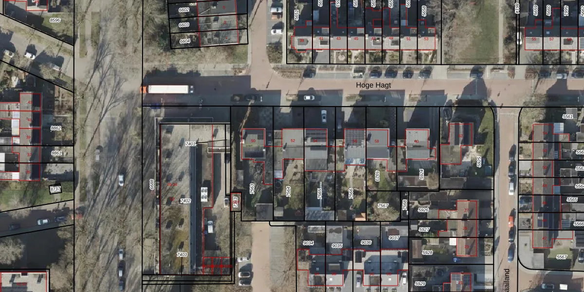 Het perceel waarop Hoge Hagt 52 staat heeft een oppervlakte van 416 m². Dit is een groot perceel. De perceeloppervlakte wordt geregistreerd door het Kadaster. Gedetailleerde informatie over de maten van dit perceel kunt u vinden in het rapport Kadastrale kaart met maatvoering van Hoge Hagt 52.