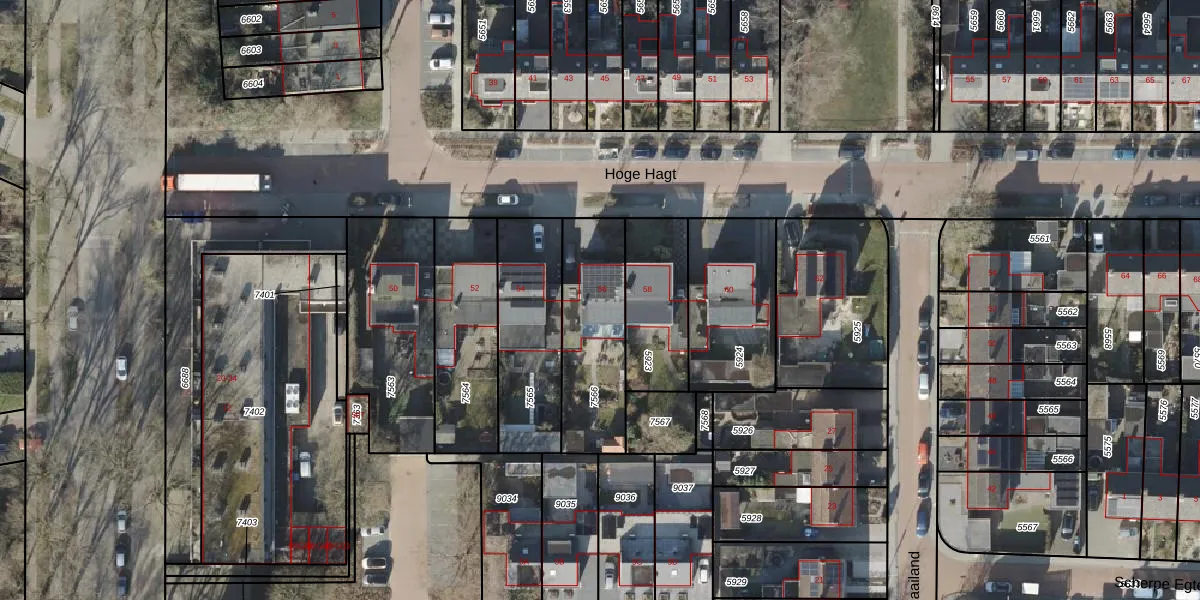 Het perceel waarop Hoge Hagt 56 staat heeft een oppervlakte van 416 m². Dit is een groot perceel. De perceeloppervlakte wordt geregistreerd door het Kadaster. Gedetailleerde informatie over de maten van dit perceel kunt u vinden in het rapport Kadastrale kaart met maatvoering van Hoge Hagt 56.