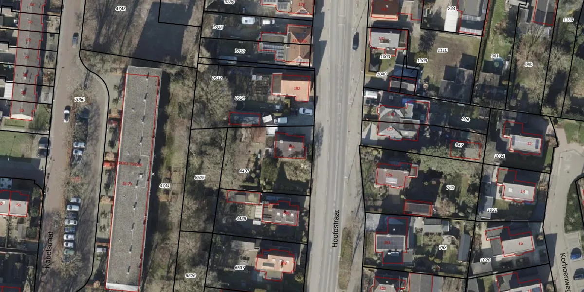 Het perceel waarop Hoofdstraat 184 staat heeft een oppervlakte van 690 m². Dit is een groot perceel. De perceeloppervlakte wordt geregistreerd door het Kadaster. Gedetailleerde informatie over de maten van dit perceel kunt u vinden in het rapport Kadastrale kaart met maatvoering van Hoofdstraat 184.