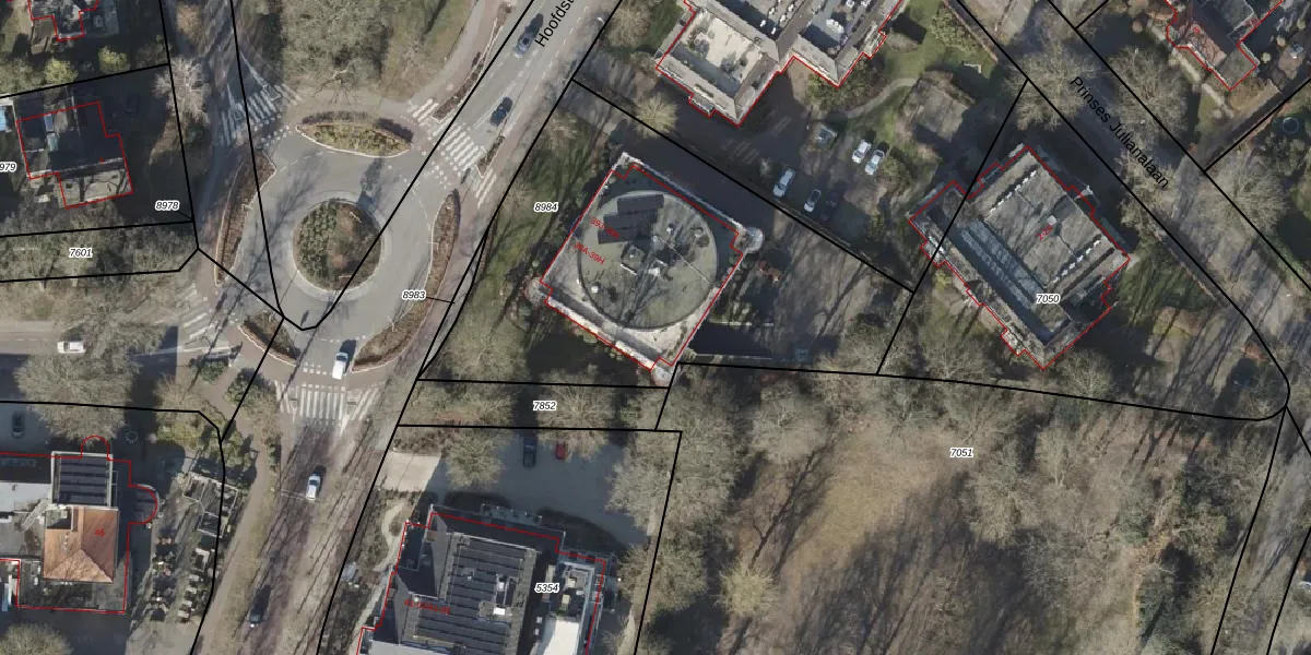 Het perceel waarop Hoofdstraat 39-F staat heeft een oppervlakte van 1988 m². Dit is een zeer groot perceel. De perceeloppervlakte wordt geregistreerd door het Kadaster. Gedetailleerde informatie over de maten van dit perceel kunt u vinden in het rapport Kadastrale kaart met maatvoering van Hoofdstraat 39-F.