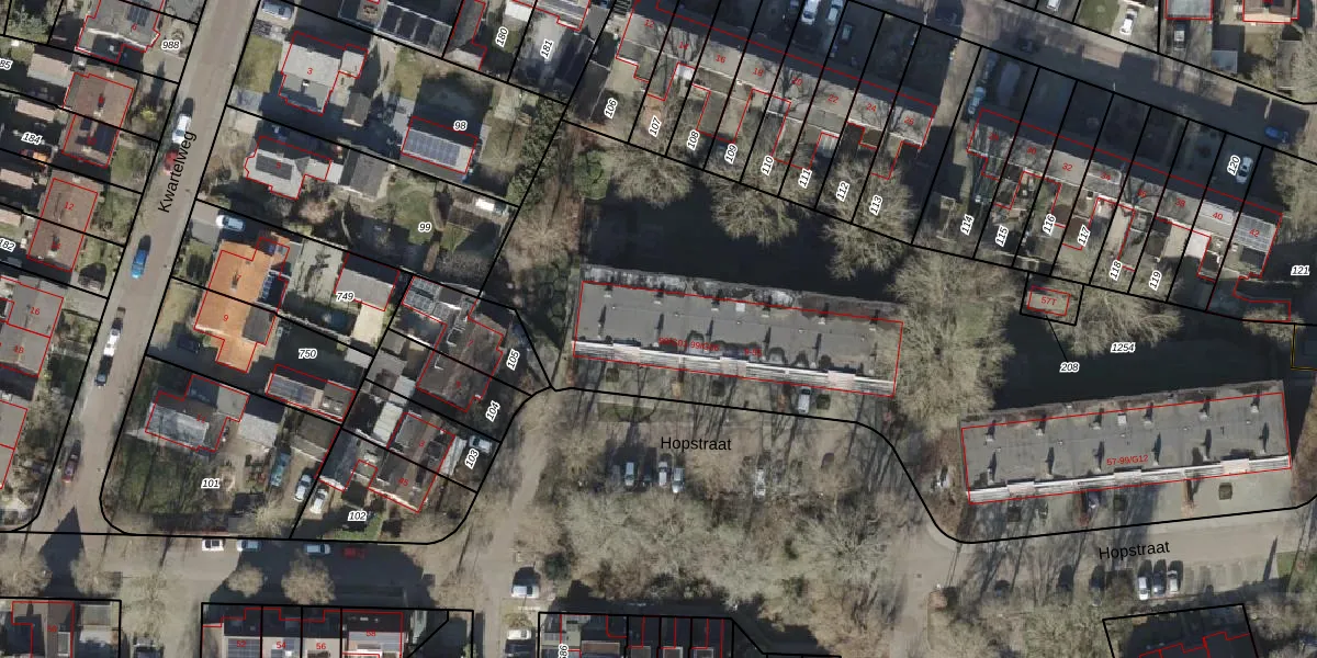 Het perceel waarop Hopstraat 19 staat heeft een oppervlakte van 4273 m². Dit is een zeer groot perceel. De perceeloppervlakte wordt geregistreerd door het Kadaster. Gedetailleerde informatie over de maten van dit perceel kunt u vinden in het rapport Kadastrale kaart met maatvoering van Hopstraat 19.