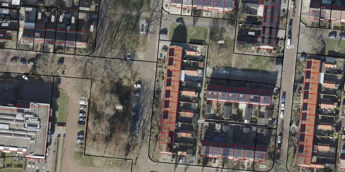Het perceel waarop Jagerstraat 31 staat heeft een oppervlakte van 3978 m². Dit is een zeer groot perceel. De perceeloppervlakte wordt geregistreerd door het Kadaster. Gedetailleerde informatie over de maten van dit perceel kunt u vinden in het rapport Kadastrale kaart met maatvoering van Jagerstraat 31.