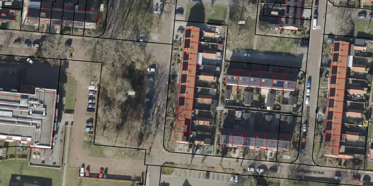 Het perceel waarop Jagerstraat 35 staat heeft een oppervlakte van 3978 m². Dit is een zeer groot perceel. De perceeloppervlakte wordt geregistreerd door het Kadaster. Gedetailleerde informatie over de maten van dit perceel kunt u vinden in het rapport Kadastrale kaart met maatvoering van Jagerstraat 35.