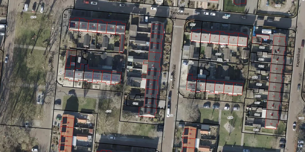 Het perceel waarop Kampjesstraat 12 staat heeft een oppervlakte van 3708 m². Dit is een zeer groot perceel. De perceeloppervlakte wordt geregistreerd door het Kadaster. Gedetailleerde informatie over de maten van dit perceel kunt u vinden in het rapport Kadastrale kaart met maatvoering van Kampjesstraat 12.