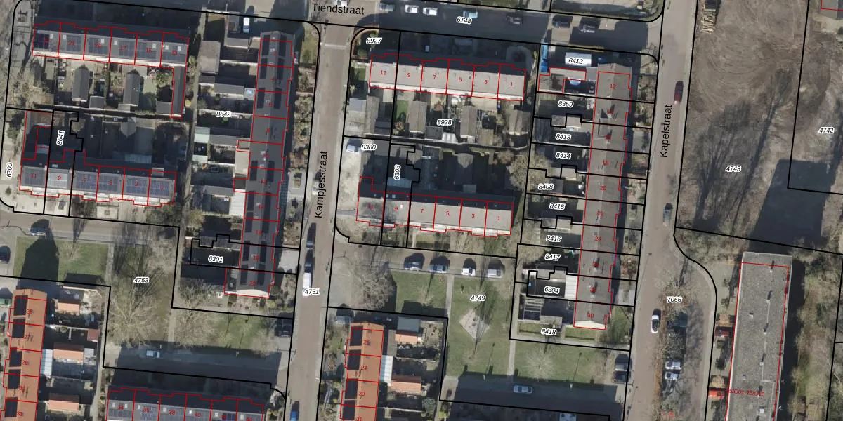 Kampjesstraat 7 is gelegen op kadastraal perceel EPE00U8928. Deze kadastrale aanduiding is uniek en wordt gebruikt door het Kadaster om eigendomsrechten en andere zakelijke rechten vast te leggen. Het perceel maakt onderdeel uit van de kadastrale gemeente Epe en Oene.