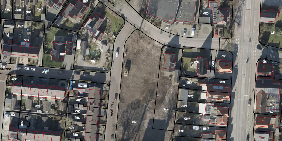 Het perceel waarop Kapelstraat 1-04 staat heeft een oppervlakte van 2230 m². Dit is een zeer groot perceel. De perceeloppervlakte wordt geregistreerd door het Kadaster. Gedetailleerde informatie over de maten van dit perceel kunt u vinden in het rapport Kadastrale kaart met maatvoering van Kapelstraat 1-04.