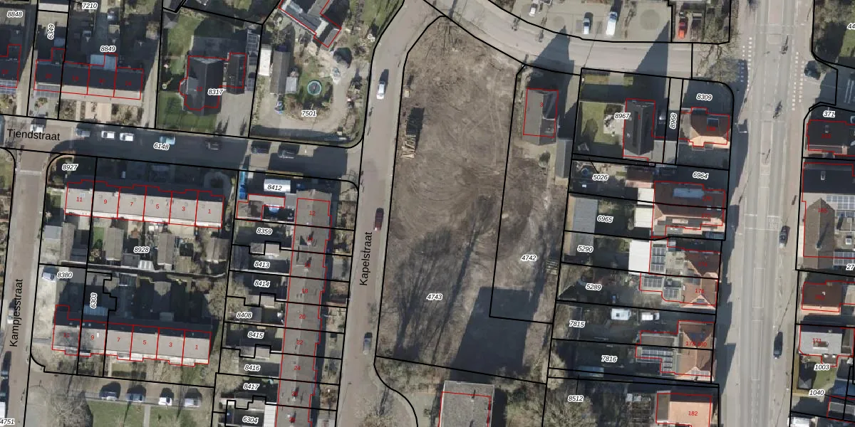 Het perceel waarop Kapelstraat 1-07 staat heeft een oppervlakte van 2230 m². Dit is een zeer groot perceel. De perceeloppervlakte wordt geregistreerd door het Kadaster. Gedetailleerde informatie over de maten van dit perceel kunt u vinden in het rapport Kadastrale kaart met maatvoering van Kapelstraat 1-07.