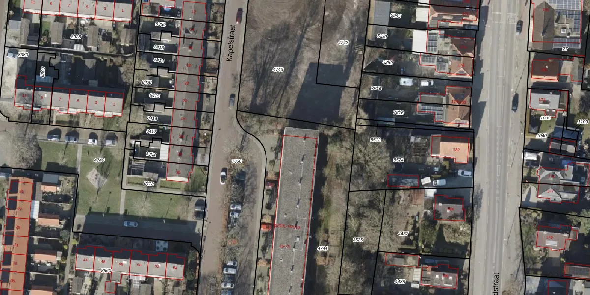 Het perceel waarop Kapelstraat 15 staat heeft een oppervlakte van 2590 m². Dit is een zeer groot perceel. De perceeloppervlakte wordt geregistreerd door het Kadaster. Gedetailleerde informatie over de maten van dit perceel kunt u vinden in het rapport Kadastrale kaart met maatvoering van Kapelstraat 15.