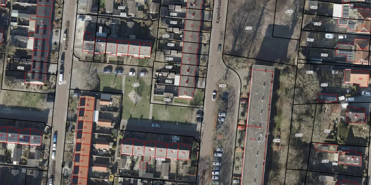 Gebruik de zoekbalk of klik op een perceel voor informatie over de adressen binnen dit perceel.