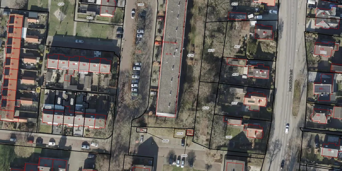 Het perceel waarop Kapelstraat 59 staat heeft een oppervlakte van 2590 m². Dit is een zeer groot perceel. De perceeloppervlakte wordt geregistreerd door het Kadaster. Gedetailleerde informatie over de maten van dit perceel kunt u vinden in het rapport Kadastrale kaart met maatvoering van Kapelstraat 59.
