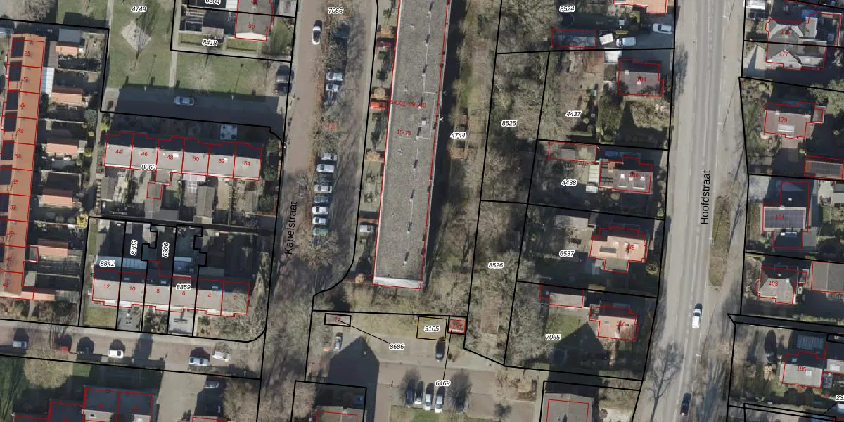 Het perceel waarop Kapelstraat 61 staat heeft een oppervlakte van 2590 m². Dit is een zeer groot perceel. De perceeloppervlakte wordt geregistreerd door het Kadaster. Gedetailleerde informatie over de maten van dit perceel kunt u vinden in het rapport Kadastrale kaart met maatvoering van Kapelstraat 61.