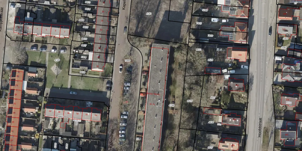 Het perceel waarop Kapelstraat 75-G08 staat heeft een oppervlakte van 2590 m². Dit is een zeer groot perceel. De perceeloppervlakte wordt geregistreerd door het Kadaster. Gedetailleerde informatie over de maten van dit perceel kunt u vinden in het rapport Kadastrale kaart met maatvoering van Kapelstraat 75-G08.