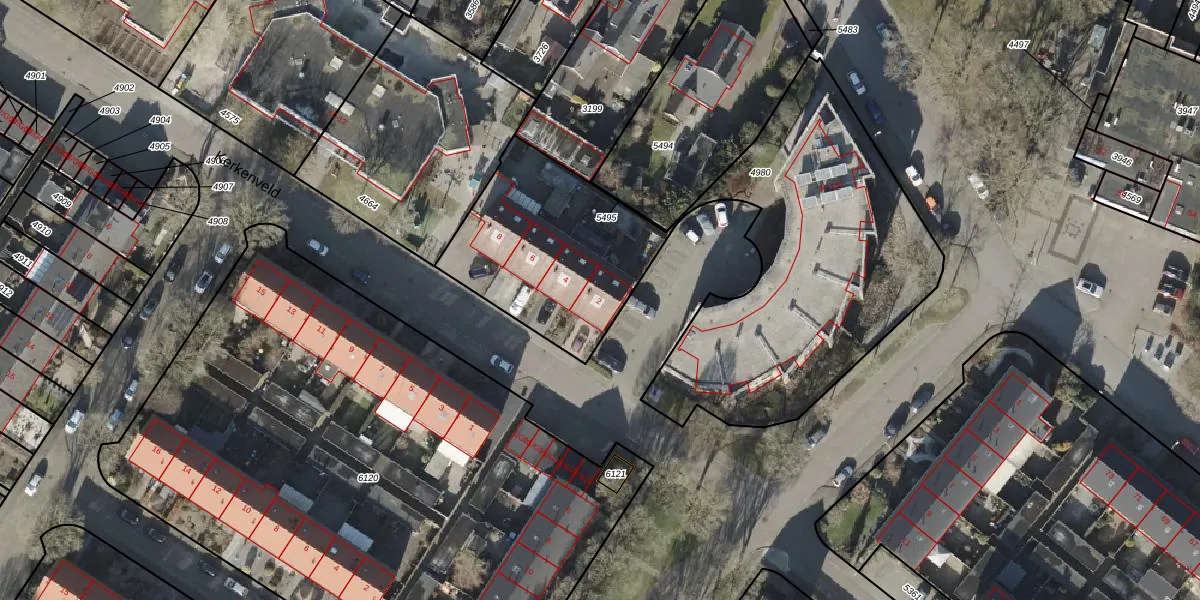 Het perceel waarop Kerkenveld 2 staat heeft een oppervlakte van 2338 m². Dit is een zeer groot perceel. De perceeloppervlakte wordt geregistreerd door het Kadaster. Gedetailleerde informatie over de maten van dit perceel kunt u vinden in het rapport Kadastrale kaart met maatvoering van Kerkenveld 2.
