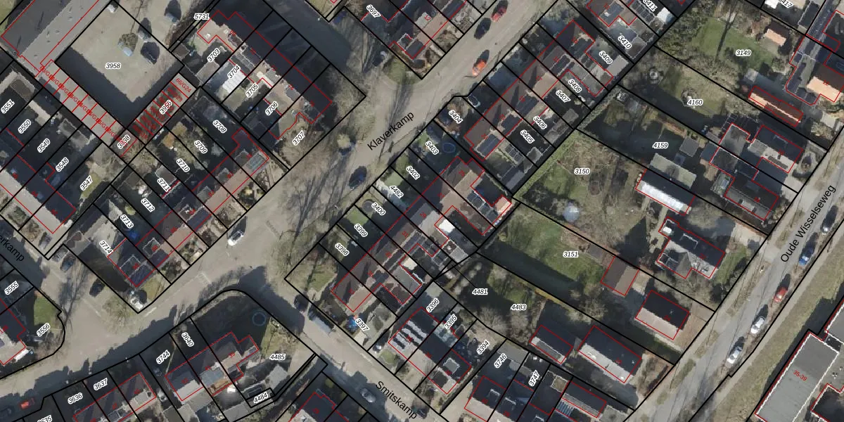 Gebruik de zoekbalk of klik op een perceel voor informatie over de adressen binnen dit perceel.