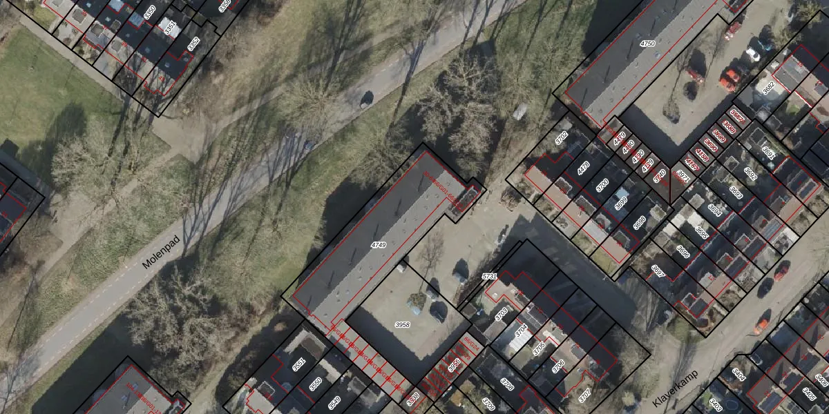 Het perceel waarop Klaverkamp 32 staat heeft een oppervlakte van 965 m². Dit is een groot perceel. De perceeloppervlakte wordt geregistreerd door het Kadaster. Gedetailleerde informatie over de maten van dit perceel kunt u vinden in het rapport Kadastrale kaart met maatvoering van Klaverkamp 32.