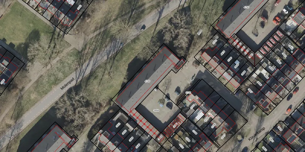 Het perceel waarop Klaverkamp 34 staat heeft een oppervlakte van 965 m². Dit is een groot perceel. De perceeloppervlakte wordt geregistreerd door het Kadaster. Gedetailleerde informatie over de maten van dit perceel kunt u vinden in het rapport Kadastrale kaart met maatvoering van Klaverkamp 34.