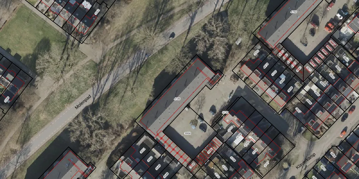 Het perceel waarop Klaverkamp 46 staat heeft een oppervlakte van 965 m². Dit is een groot perceel. De perceeloppervlakte wordt geregistreerd door het Kadaster. Gedetailleerde informatie over de maten van dit perceel kunt u vinden in het rapport Kadastrale kaart met maatvoering van Klaverkamp 46.