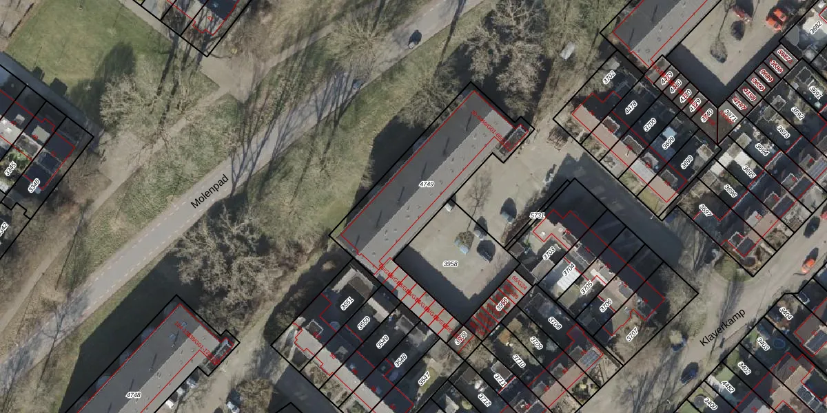 Het perceel waarop Klaverkamp 66-G07 staat heeft een oppervlakte van 965 m². Dit is een groot perceel. De perceeloppervlakte wordt geregistreerd door het Kadaster. Gedetailleerde informatie over de maten van dit perceel kunt u vinden in het rapport Kadastrale kaart met maatvoering van Klaverkamp 66-G07.