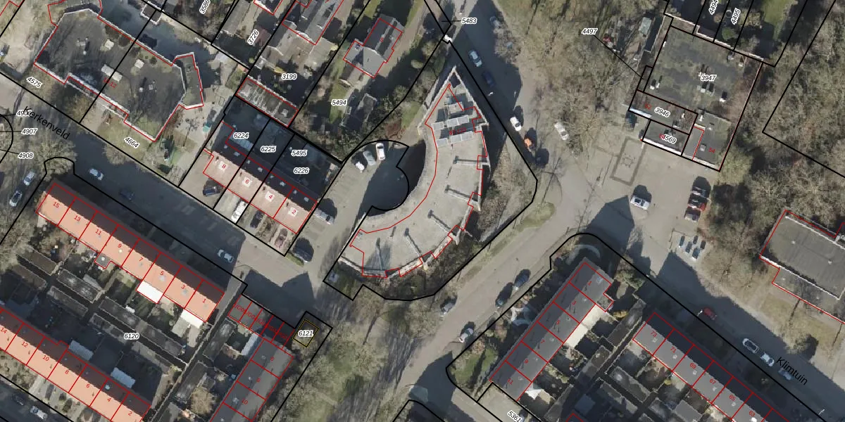 Het perceel waarop Klimtuin 117 staat heeft een oppervlakte van 1916 m². Dit is een zeer groot perceel. De perceeloppervlakte wordt geregistreerd door het Kadaster. Gedetailleerde informatie over de maten van dit perceel kunt u vinden in het rapport Kadastrale kaart met maatvoering van Klimtuin 117.