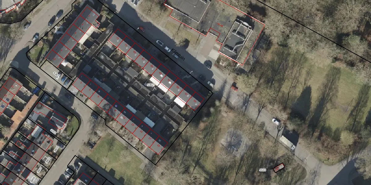 Het perceel waarop Klimtuin 57 staat heeft een oppervlakte van 4243 m². Dit is een zeer groot perceel. De perceeloppervlakte wordt geregistreerd door het Kadaster. Gedetailleerde informatie over de maten van dit perceel kunt u vinden in het rapport Kadastrale kaart met maatvoering van Klimtuin 57.