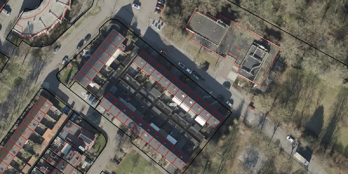 Het perceel waarop Klimtuin 65 staat heeft een oppervlakte van 4243 m². Dit is een zeer groot perceel. De perceeloppervlakte wordt geregistreerd door het Kadaster. Gedetailleerde informatie over de maten van dit perceel kunt u vinden in het rapport Kadastrale kaart met maatvoering van Klimtuin 65.