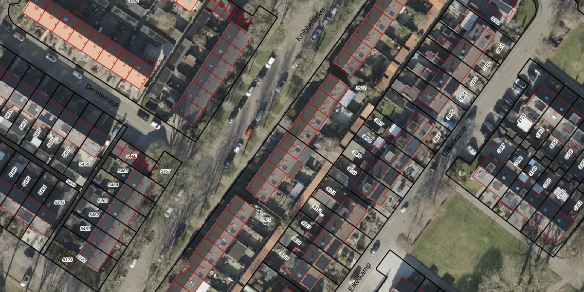 Het perceel waarop Knibbelakker 39 staat heeft een oppervlakte van 1955 m². Dit is een zeer groot perceel. De perceeloppervlakte wordt geregistreerd door het Kadaster. Gedetailleerde informatie over de maten van dit perceel kunt u vinden in het rapport Kadastrale kaart met maatvoering van Knibbelakker 39.