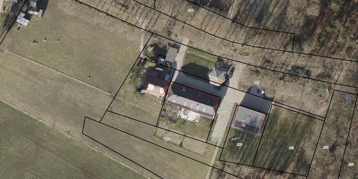 Het perceel waarop Koeweg 25-D staat heeft een oppervlakte van 783 m². Dit is een groot perceel. De perceeloppervlakte wordt geregistreerd door het Kadaster. Gedetailleerde informatie over de maten van dit perceel kunt u vinden in het rapport Kadastrale kaart met maatvoering van Koeweg 25-D.