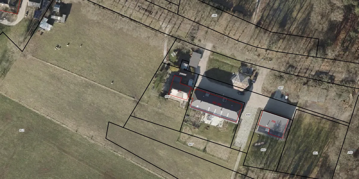 Het perceel waarop Koeweg 27 staat heeft een oppervlakte van 864 m². Dit is een groot perceel. De perceeloppervlakte wordt geregistreerd door het Kadaster. Gedetailleerde informatie over de maten van dit perceel kunt u vinden in het rapport Kadastrale kaart met maatvoering van Koeweg 27.