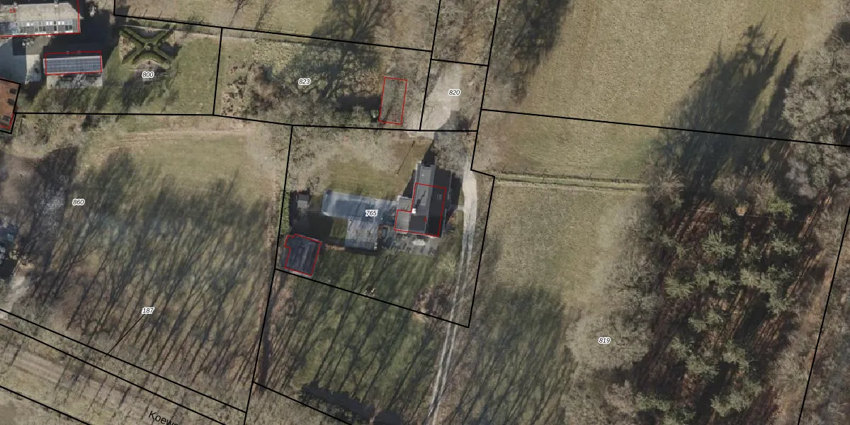 Het perceel waarop Koeweg 6 staat heeft een oppervlakte van 1800 m². Dit is een zeer groot perceel. De perceeloppervlakte wordt geregistreerd door het Kadaster. Gedetailleerde informatie over de maten van dit perceel kunt u vinden in het rapport Kadastrale kaart met maatvoering van Koeweg 6.