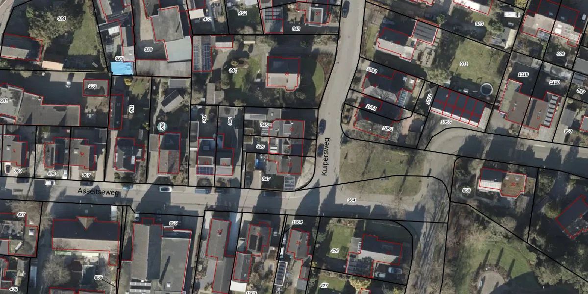 Gebruik de zoekbalk of klik op een perceel voor informatie over de adressen binnen dit perceel.