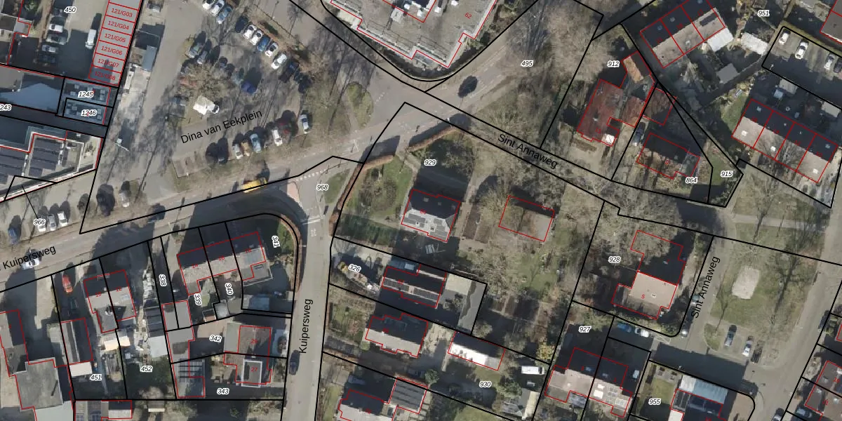 Gebruik de zoekbalk of klik op een perceel voor informatie over de adressen binnen dit perceel.