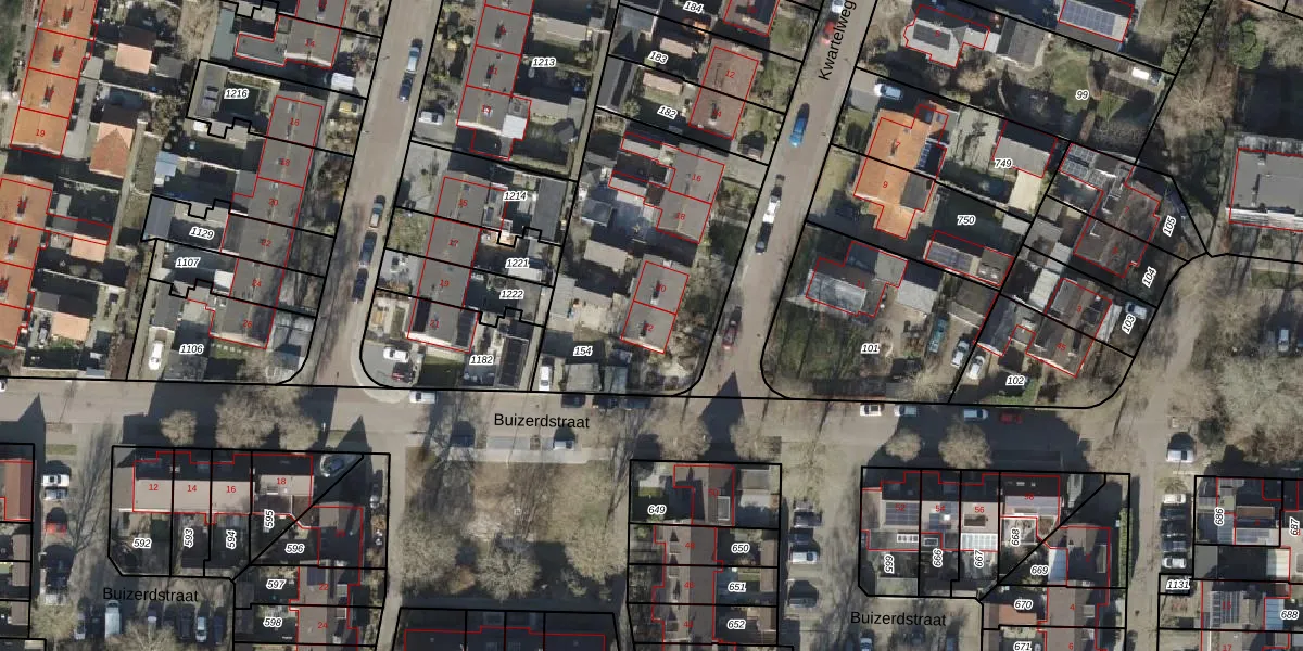 Het perceel waarop Kwartelweg 22 staat heeft een oppervlakte van 1082 m². Dit is een zeer groot perceel. De perceeloppervlakte wordt geregistreerd door het Kadaster. Gedetailleerde informatie over de maten van dit perceel kunt u vinden in het rapport Kadastrale kaart met maatvoering van Kwartelweg 22.