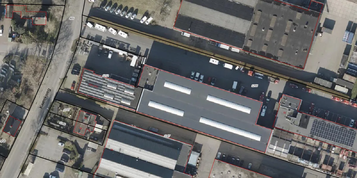 Het perceel waarop Kweekweg 32-B staat heeft een oppervlakte van 6545 m². Dit is een zeer groot perceel. De perceeloppervlakte wordt geregistreerd door het Kadaster. Gedetailleerde informatie over de maten van dit perceel kunt u vinden in het rapport Kadastrale kaart met maatvoering van Kweekweg 32-B.