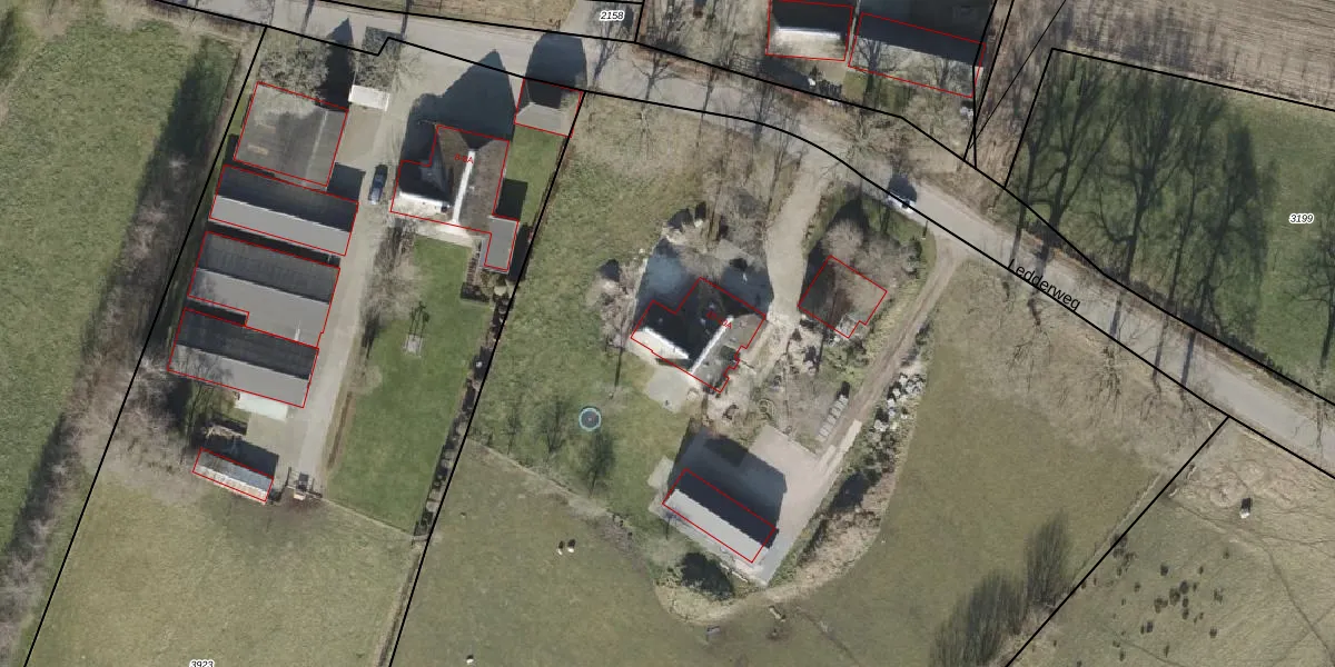 Het perceel waarop Ledderweg 10 staat heeft een oppervlakte van 1,3 ha. Dit is een zeer groot perceel. De perceeloppervlakte wordt geregistreerd door het Kadaster. Gedetailleerde informatie over de maten van dit perceel kunt u vinden in het rapport Kadastrale kaart met maatvoering van Ledderweg 10.