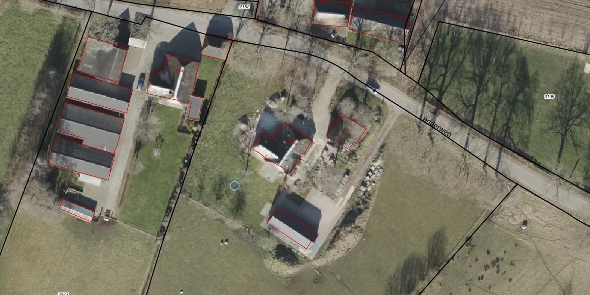 Het perceel waarop Ledderweg 10-A staat heeft een oppervlakte van 1,3 ha. Dit is een zeer groot perceel. De perceeloppervlakte wordt geregistreerd door het Kadaster. Gedetailleerde informatie over de maten van dit perceel kunt u vinden in het rapport Kadastrale kaart met maatvoering van Ledderweg 10-A.
