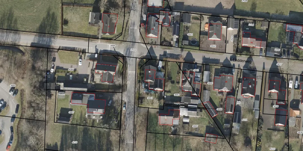 Het perceel waarop Ledderweg 34 staat heeft een oppervlakte van 514 m². Dit is een groot perceel. De perceeloppervlakte wordt geregistreerd door het Kadaster. Gedetailleerde informatie over de maten van dit perceel kunt u vinden in het rapport Kadastrale kaart met maatvoering van Ledderweg 34.