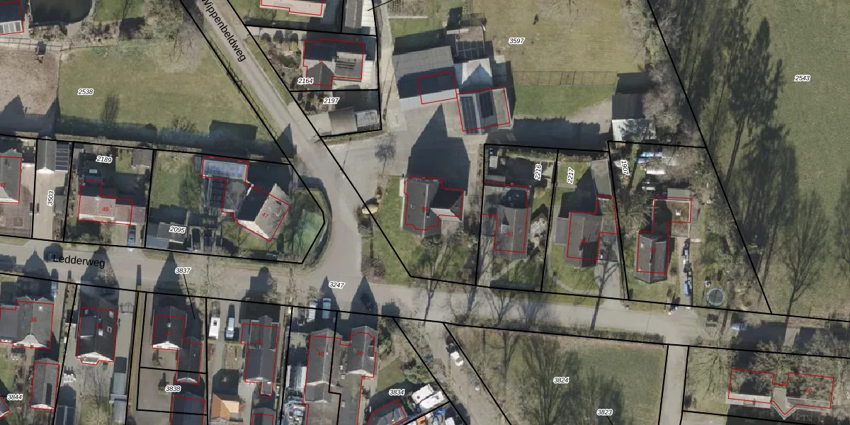 Ledderweg 49 is gelegen op kadastraal perceel EPE00L3597. Deze kadastrale aanduiding is uniek en wordt gebruikt door het Kadaster om eigendomsrechten en andere zakelijke rechten vast te leggen. Het perceel maakt onderdeel uit van de kadastrale gemeente Epe en Oene.