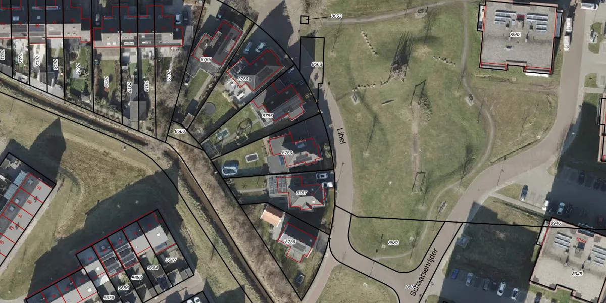 Het perceel waarop Libel 5 staat heeft een oppervlakte van 496 m². Dit is een groot perceel. De perceeloppervlakte wordt geregistreerd door het Kadaster. Gedetailleerde informatie over de maten van dit perceel kunt u vinden in het rapport Kadastrale kaart met maatvoering van Libel 5.
