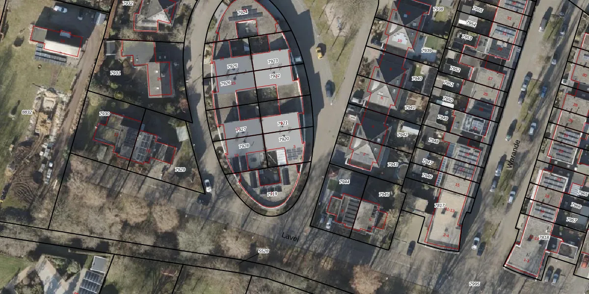 Gebruik de zoekbalk of klik op een perceel voor informatie over de adressen binnen dit perceel.